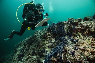 In 2018 I started the Giant Giant Kelp Restoration Project. I worked with Reef Check to get permits to do experiments in urchin barrens to find out how many urchins we needed to remove in order to allow kelp to regrow. We found out that we had to have less than 0.5 urchin on a square meter of reef for kelp to grow back!
